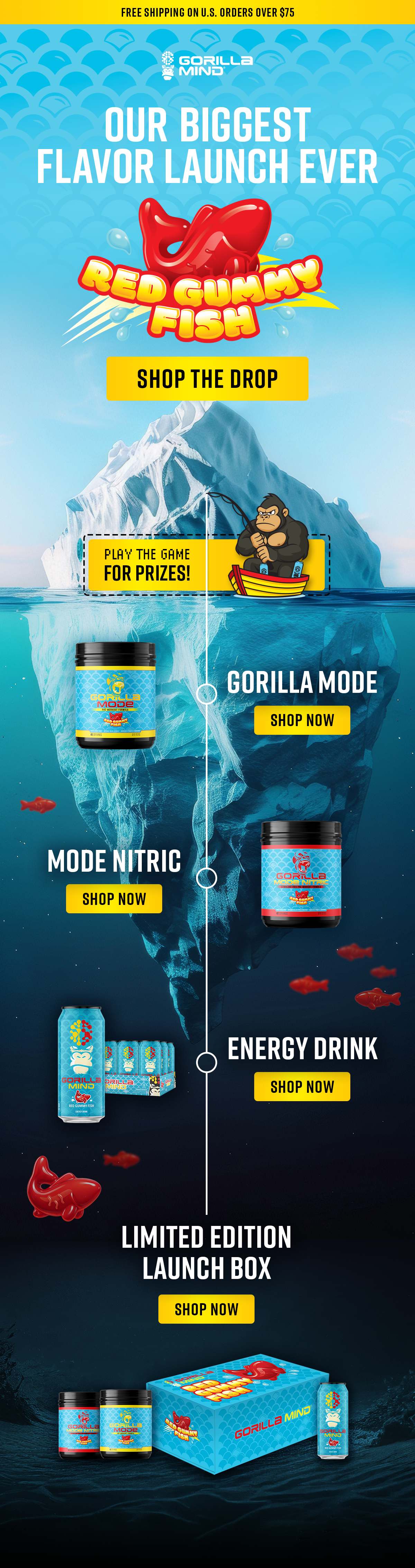 Lead designer for the Red Gummy Fish launch, owning packaging and visual systems across the brand. Delivered flavor graphics, icons, LTO labels, digital ads, email campaign, and custom illustrations - including assets for an interactive fishing game - while partnering cross-functionally to ensure consistency and quality across all deliverables.